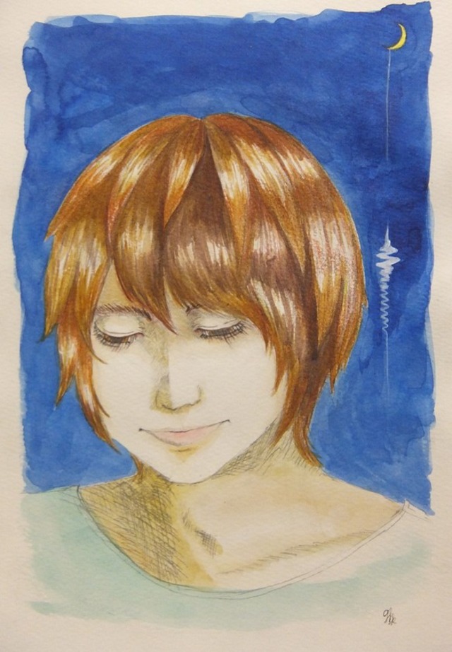 原画1点もの。 男性が伏し目がちに何かを見ている場面です♬ マーメイド紙に、水彩とカラーインクで描いた作品です。 小さくサインが入っています。 定着スプレーかけてあります。 作品の裏面に、サインと詩が書いてあります。 ※カラーインクは光に弱いです。 デジカメ撮影のため右上が上がって見えますが 実際はもう少し真っ直ぐです。 サイズ:18.2cm x 25.7cm (B5) #水彩画 #水彩 #カラーインク画 #カラーインク #人物 #男性 詩 「今夜は」 心地よい風と 三日月だけ 今日が閉まる頃 音楽が響く 僕の身体が唯一動揺する曲 今・・・・・君からのメールを読んでいます
