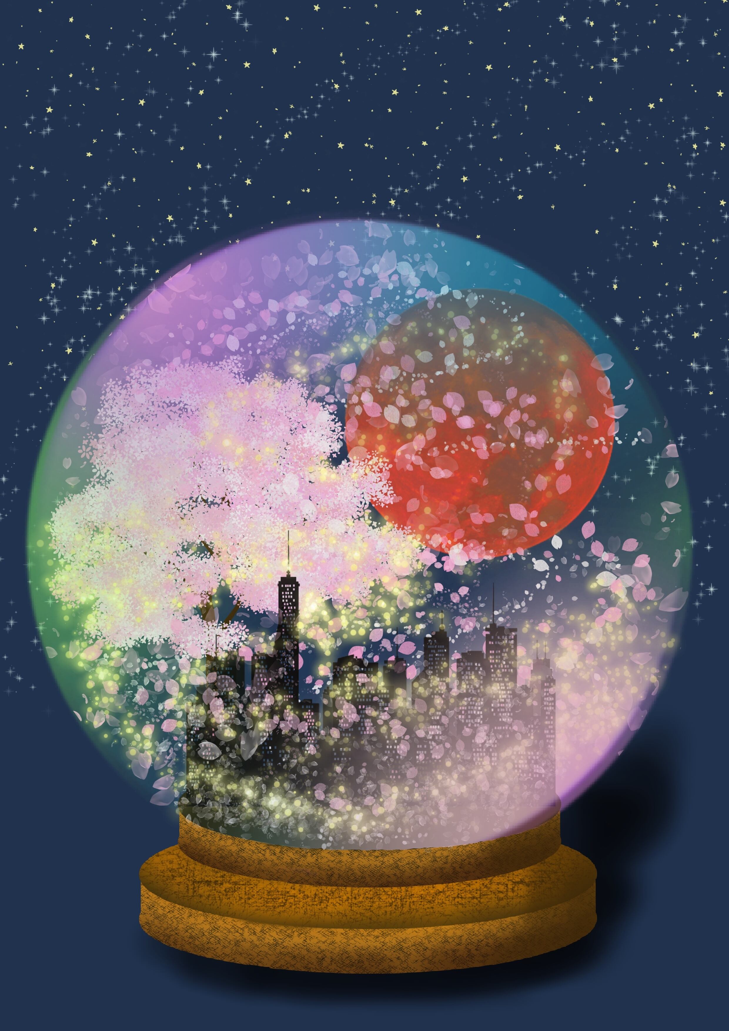スノードームに入れると風景画とは少し違った雰囲気になって