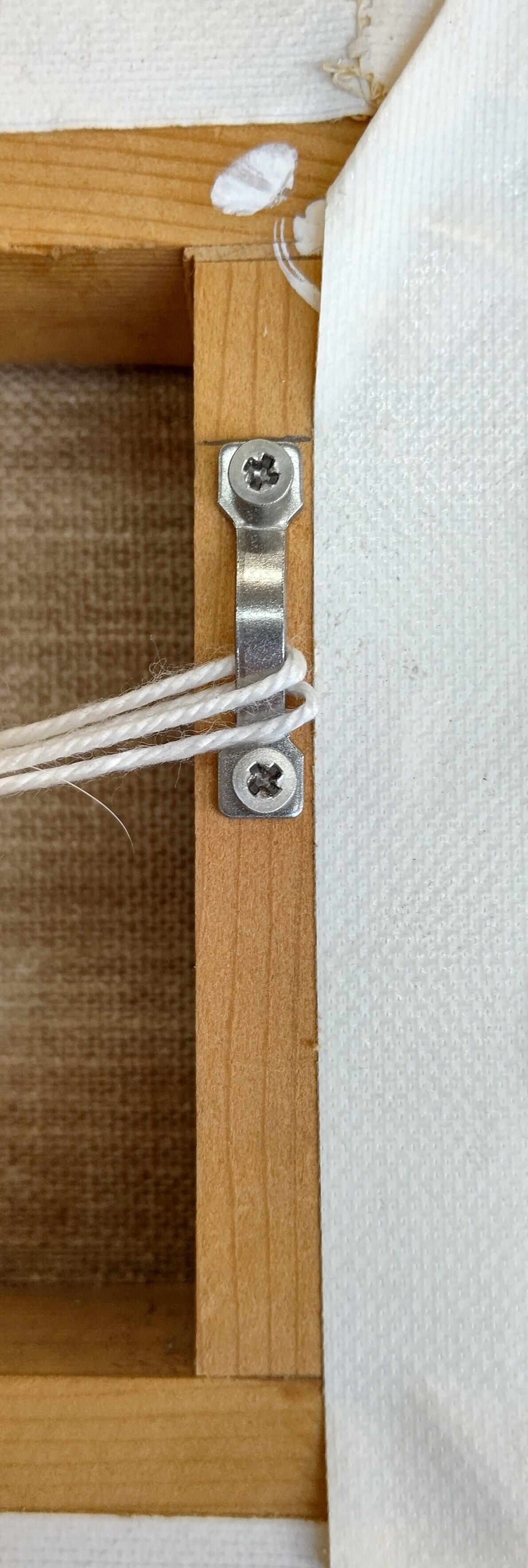 裏面に写真2枚目のように金具と紐も着いていますので、直ぐに飾る事が出来ます。