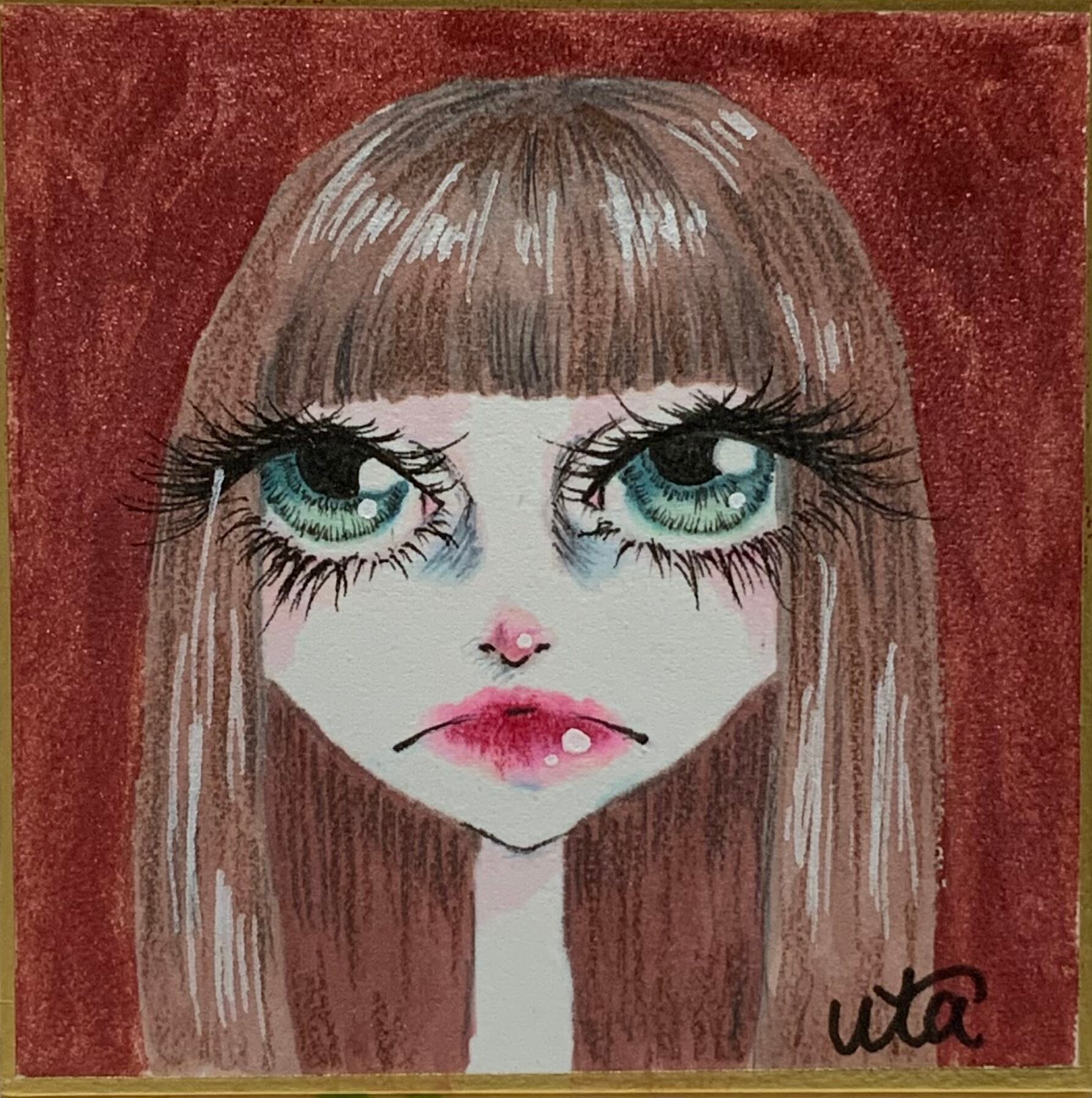 デカ目ちゃんシリーズのミニ色紙作品です。