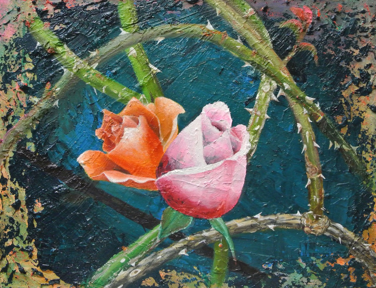 ※背景の青い部分の白い斑点はデジカメ撮影のため反射の光で、白く描いたのではありません。