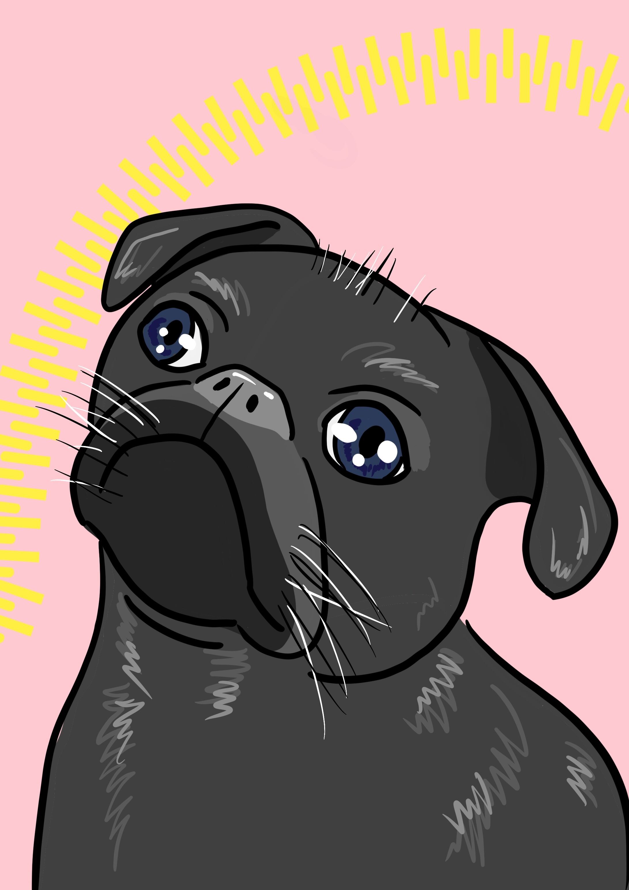 小首を傾げるワンちゃんあるある仕草を描きました。