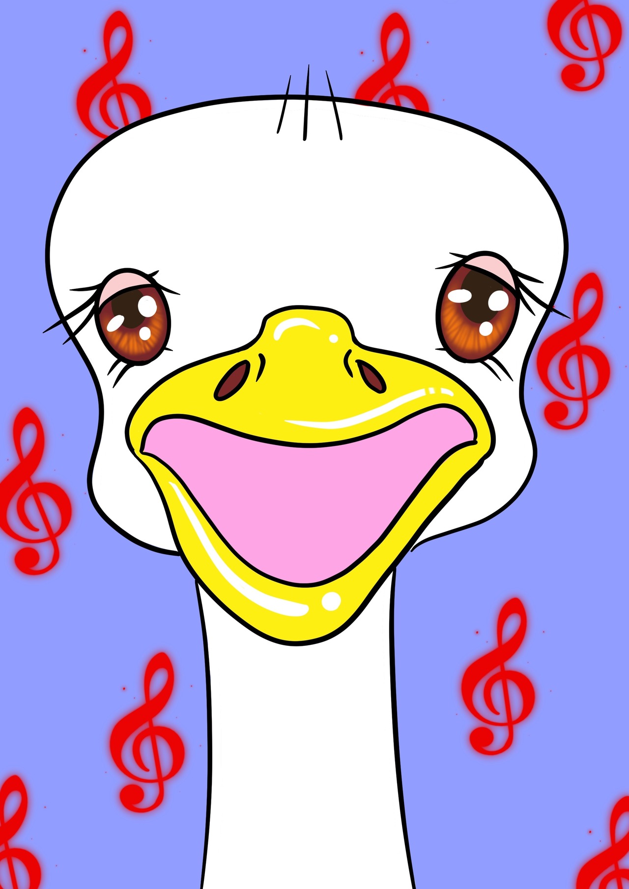 かなりファニーフェイスのお顔のダチョウをイラストにしました。