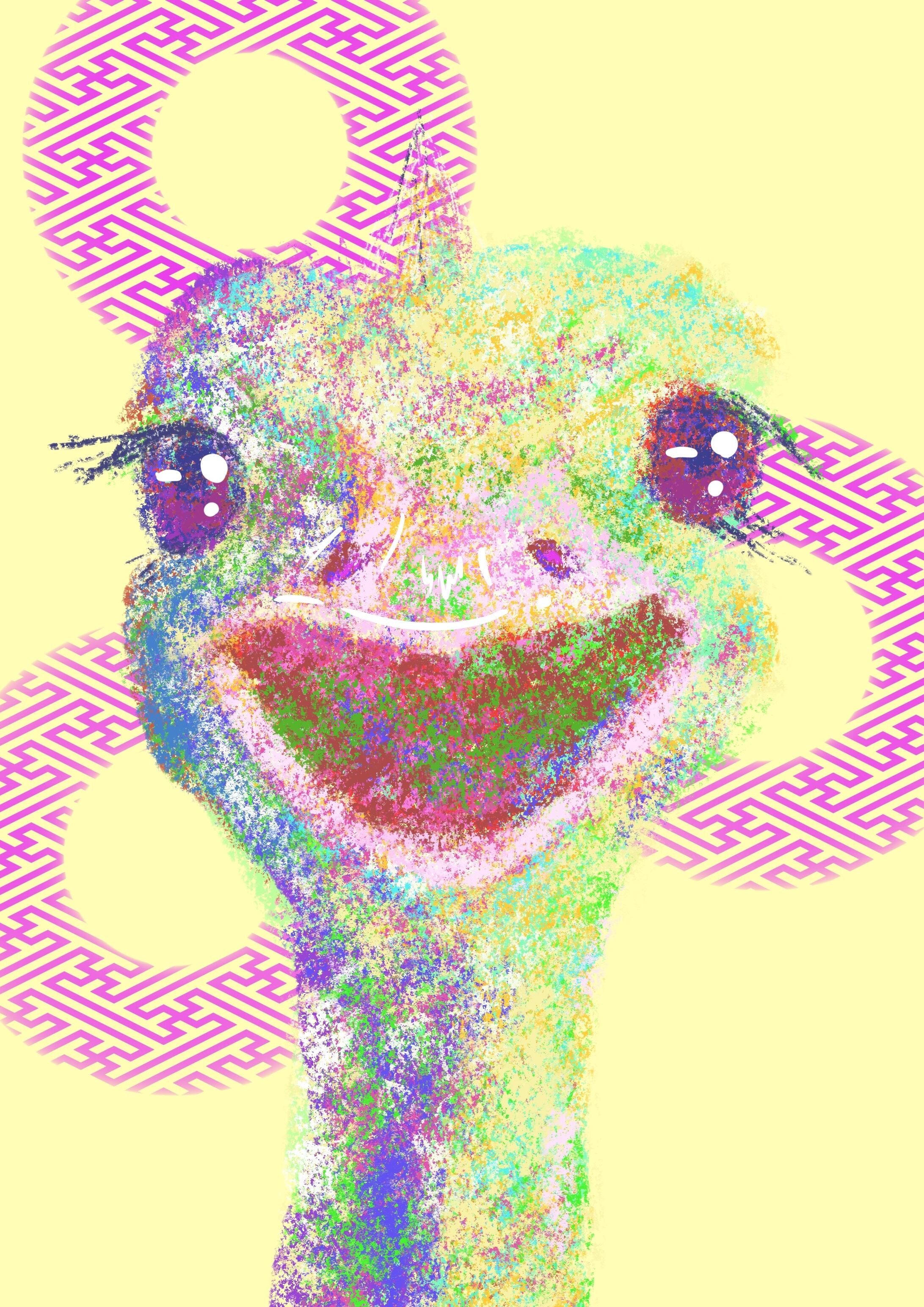 わっと言っているようなユニークな表情のダチョウをイラストにしました。
