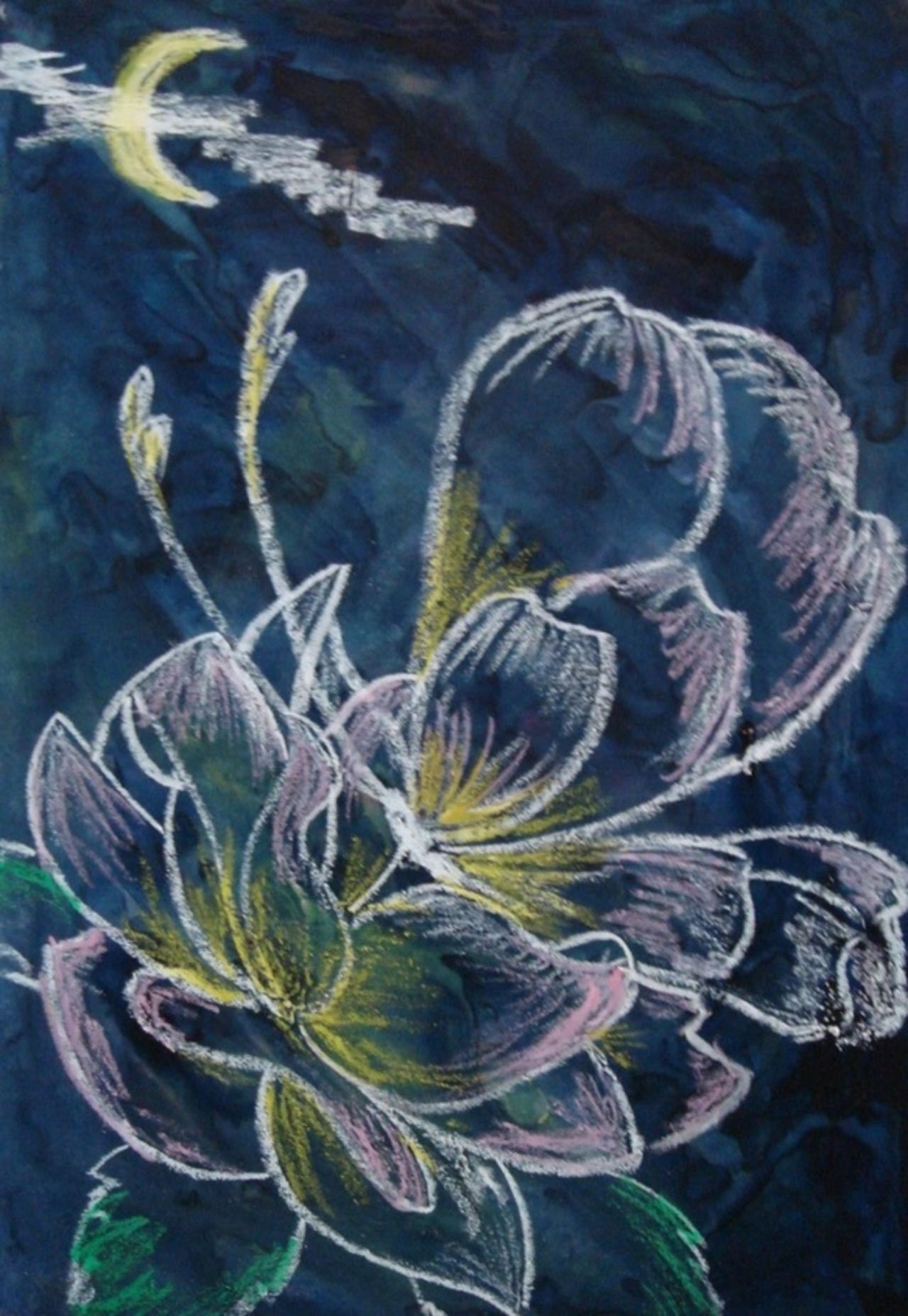 月夜に花から花びらで出来た蝶が咲き始めた時。
