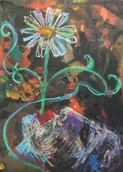 色画用紙に、水彩とクレヨンで描いた作品です。