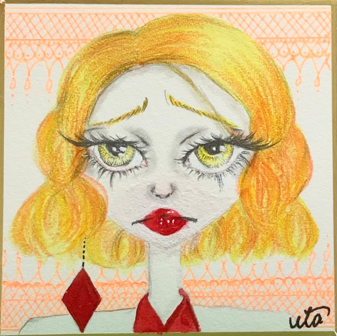デカ目ちゃんシリーズのミニ色紙作品です。