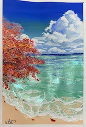 紅葉は赤系のラメ、海は青系のラメが角度によってキラキラして