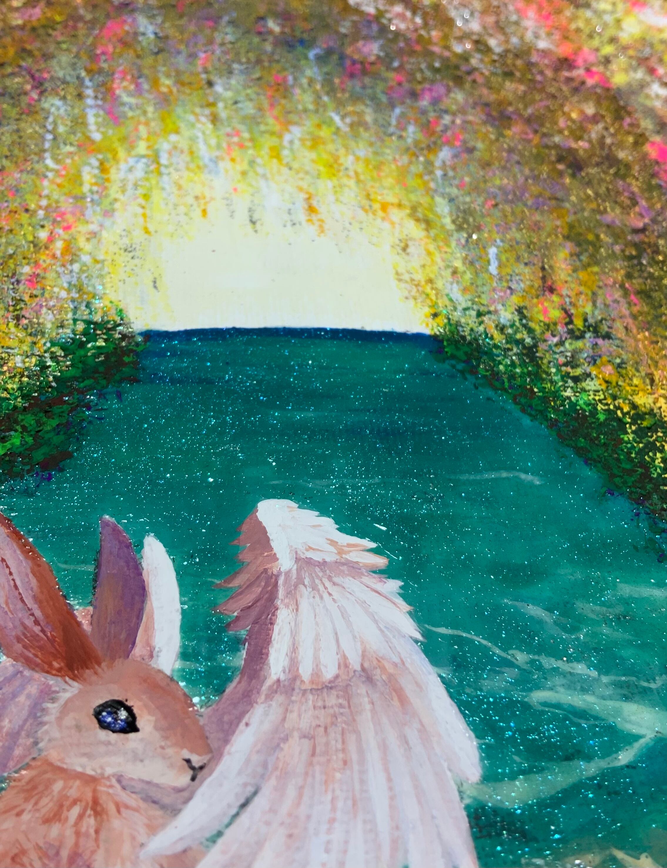 キャンバスに、アクリルガッシュなどで描いた作品です。