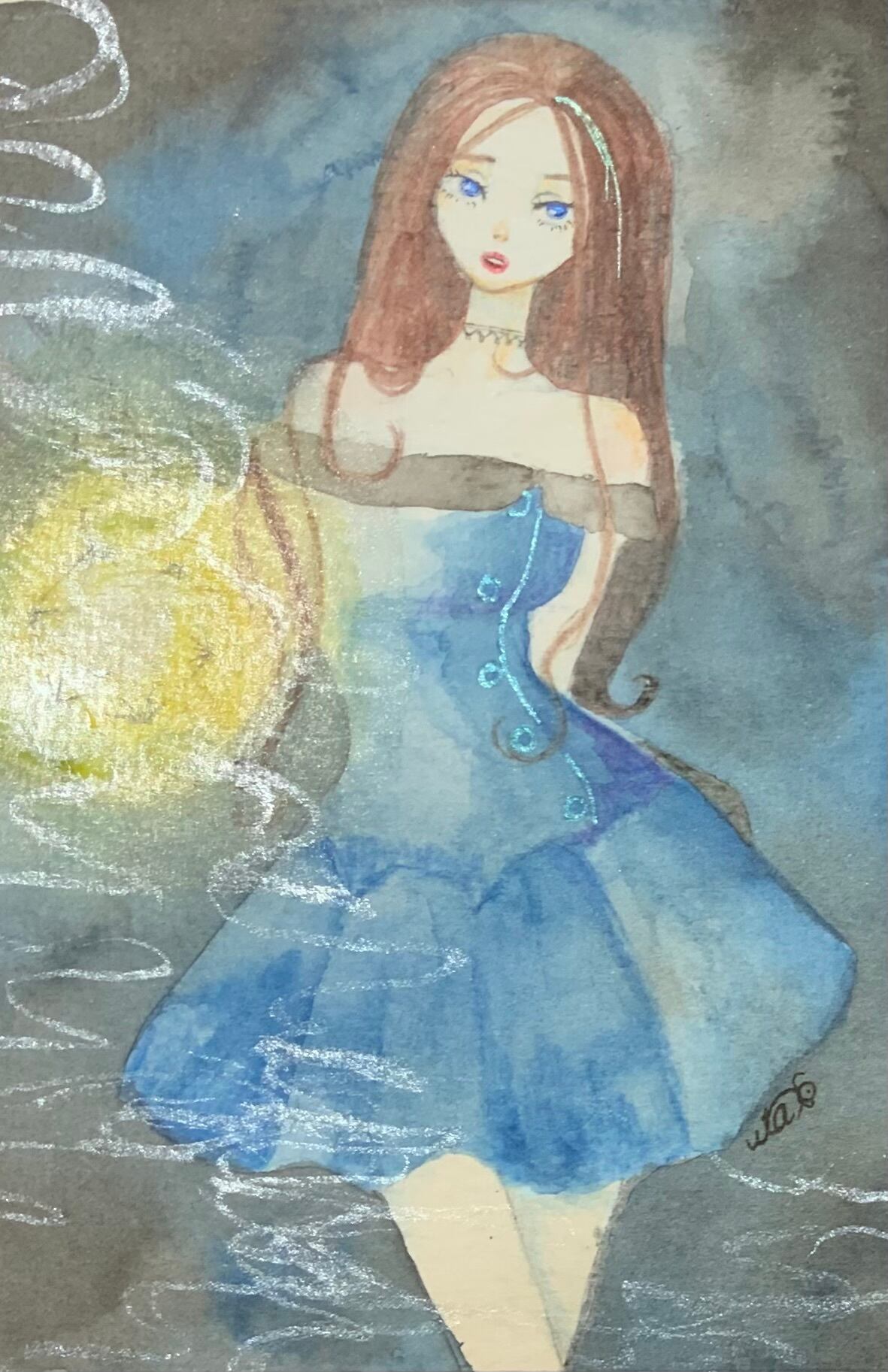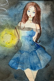 水彩紙に水彩絵具、ラメ・パールなどで描いた作品です。