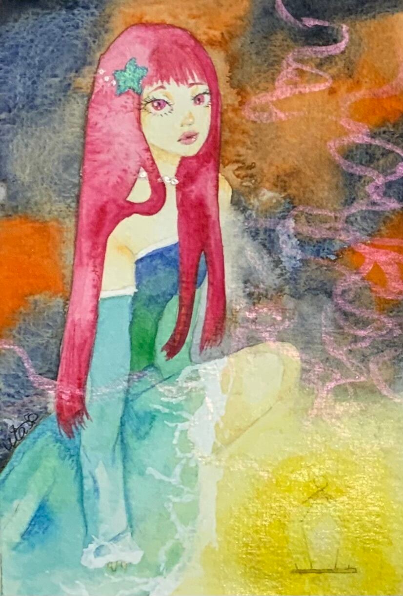 水彩紙に水彩絵具、ラメ・パールなどで描いた作品です。