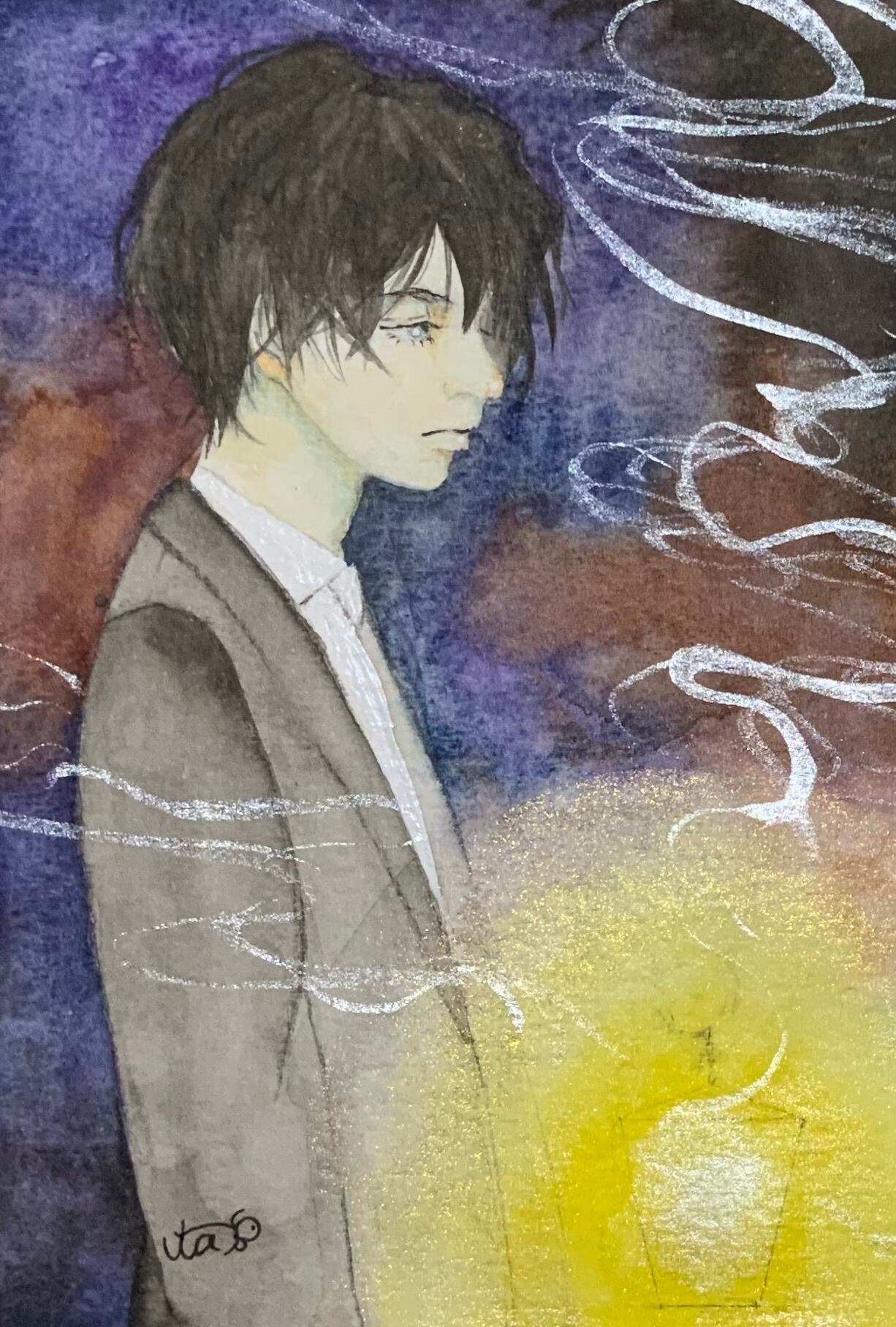 水彩紙に水彩絵具、ラメ・パールなどで描いた作品です。