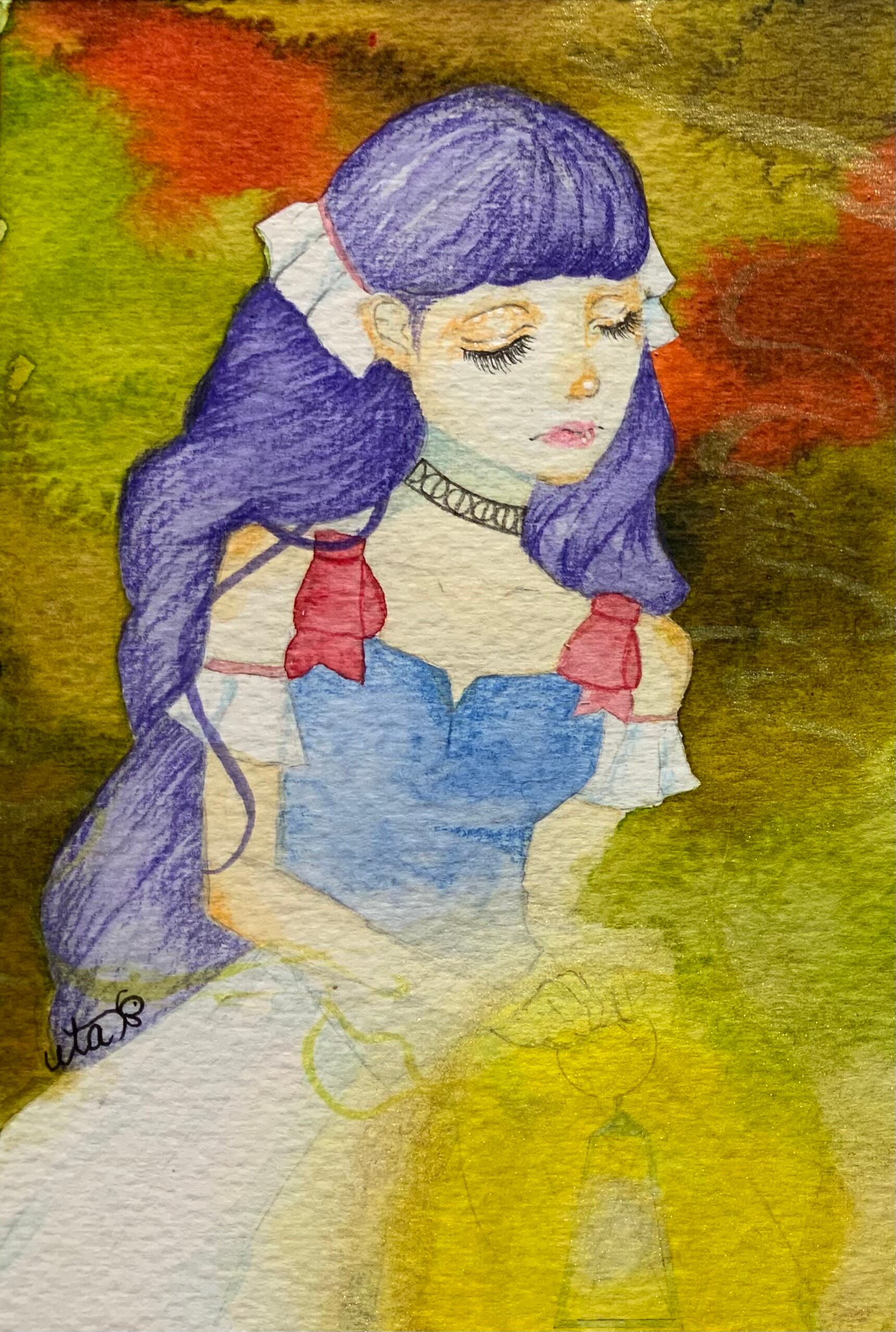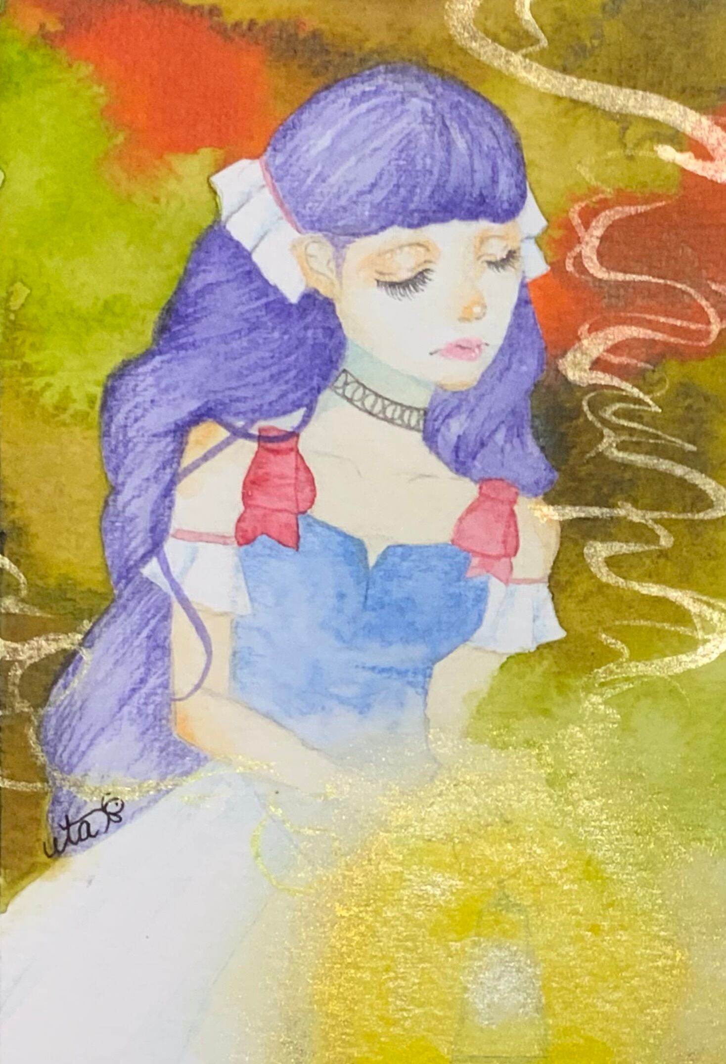 水彩紙に水彩絵具、ラメ・パールなどで描いた作品です。