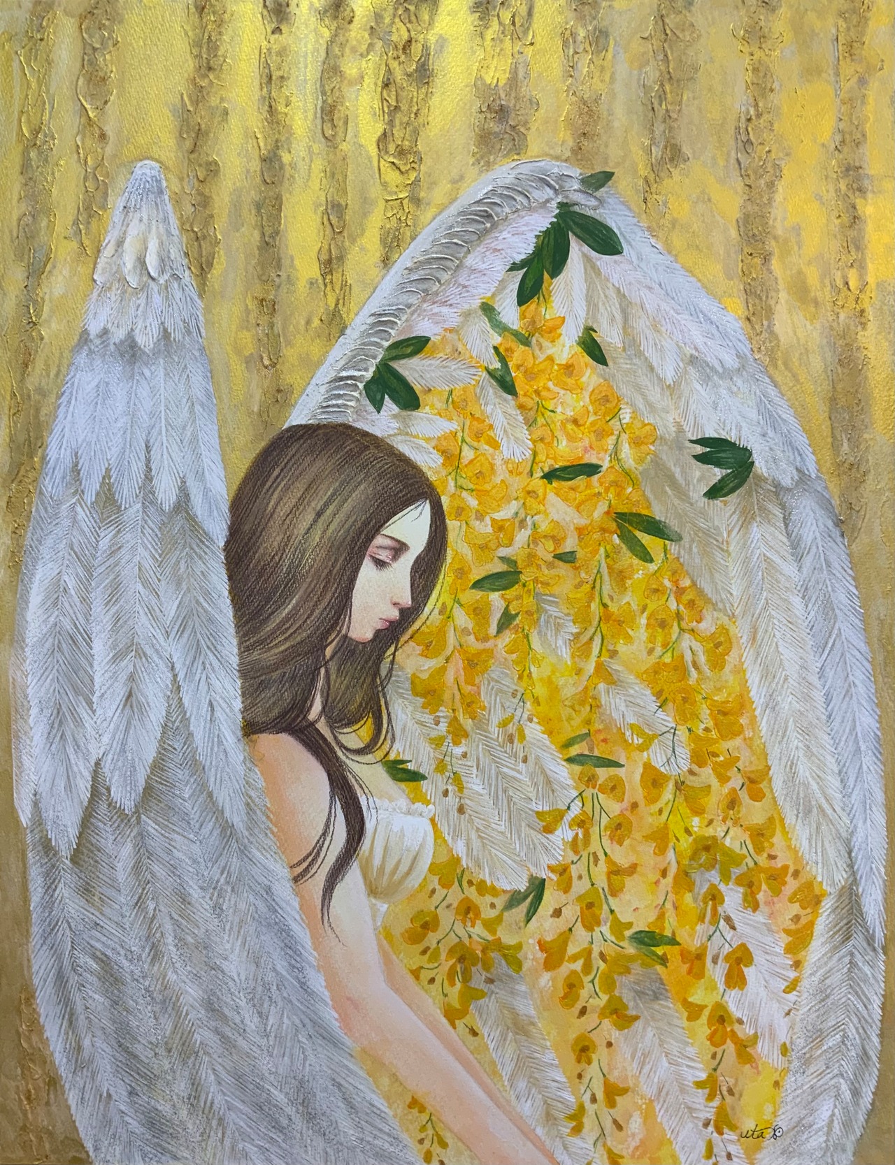 天使のウサギは彼女のお供。(「行くかい?」の中の動物)
